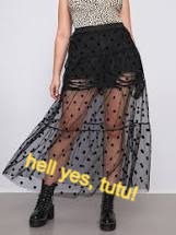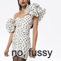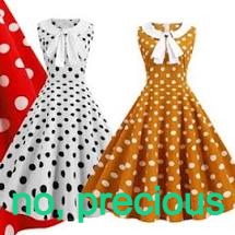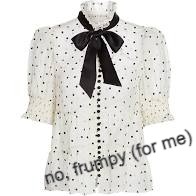 Love the dots, love the color, no bow. I'd wear a cool belt, combat boots with fishnets.