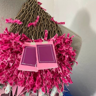I used a fishing net to create the form, using remnant pieces from my personal color analysis swatches that are hand-painted for clients I cut them into triangles and grouped them together in threes then hand-tied each grouping into the bodice using scraps of leftover quilting fabric from a quilt that I started over 30 years ago for my twin daughters and never finished, lol! I then created the tutu belt using the fishing net and bunches of tulle which includes remnants from a wedding dress, photoshoot, and window display. The underskirt was created from a scarf that I purchased at Cause Cloth thrift https://partnershipfca.com/2/about-us . The earrings and bracelet were also made from remnants of the shopping swatches. The shoes have the lyrics of Walk a Mile in My Shoes written by Joe South https://en.wikipedia.org/wiki/Walk_a_Mile_in_My_Shoes . The shoes were mine that I upcycled. The lyrics resonate with my belief in the importance of understanding each person where they are and who they are and that no one person or creature is more important than the other. It took 270 hours to construct.